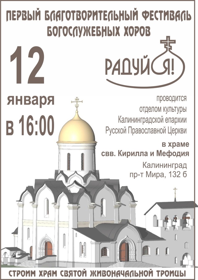 В воскресенье, 12-го января 2025 года, в 16:00 в храме святых равноапостольных Кирилла и Мефодия на проспекте Мира, 132б, начнётся большой концерт Первого благотворительного фестиваля богослужебных хоров "Радуйся!".
